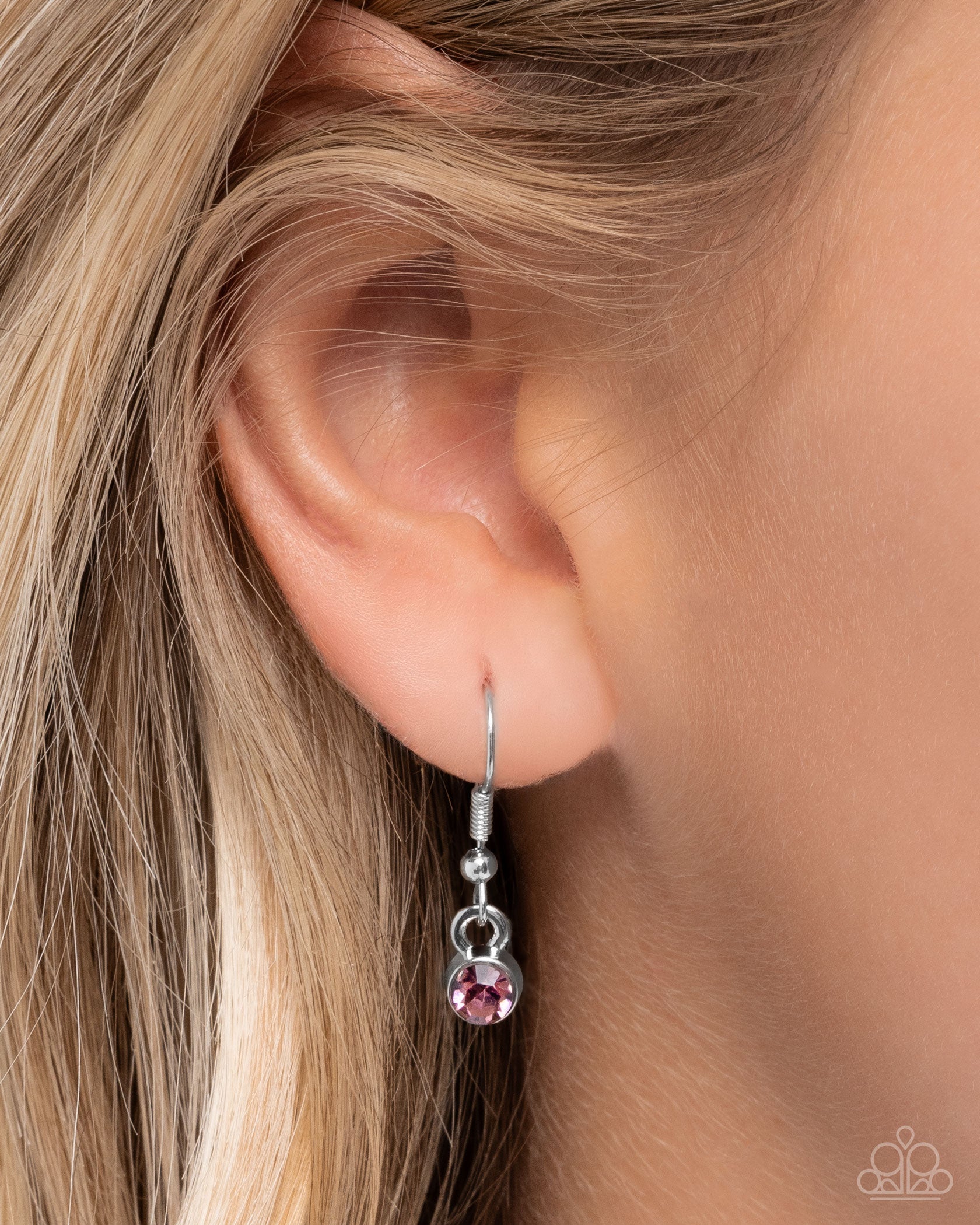 A whimsical dragonfly pendant swings from a delicate silver chain. The top wings shimmer with iridescent blue-green rhinestones, while the bottom wings glisten with light amethyst rhinestones. A peach rhinestones adorn the center of the dragonfly, adding a radiant finish to the playful design. Features an adjustable clasp closure.
