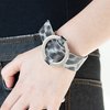 Featuring a shiny cheetah pattern, a textured piece of leather loops through the center of a shimmery silver hoop for a sassy urban look. Features an adjustable belt loop closure. Sold as one individual bracelet.