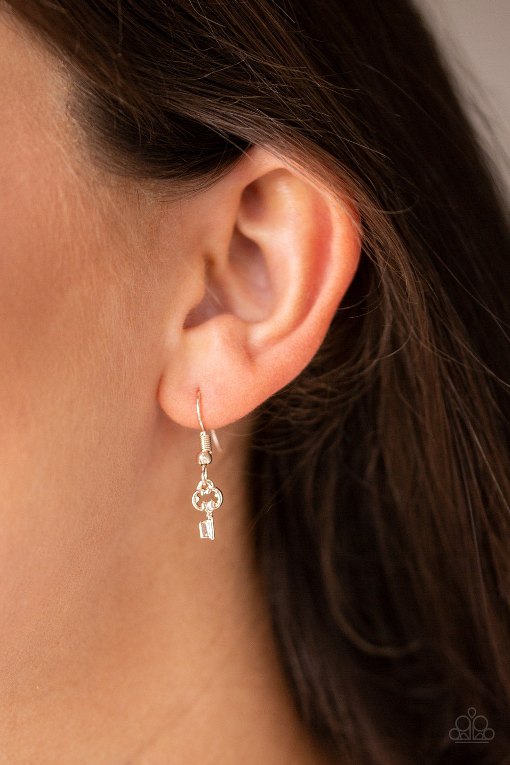 Dotted in glassy white rhinestones, a dainty rose gold key pendant swings below the collar for a charming look. Features an adjustable clasp closure.