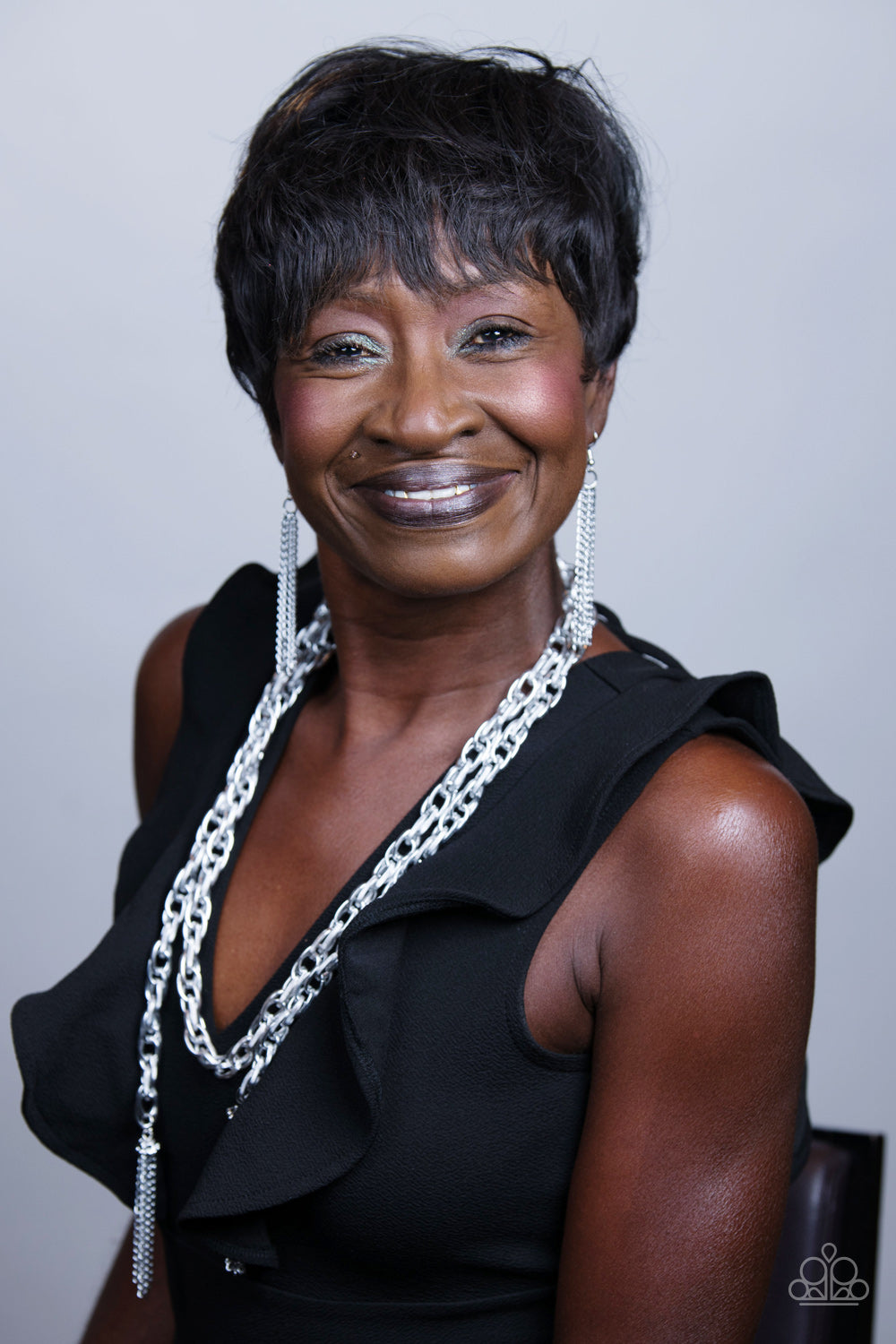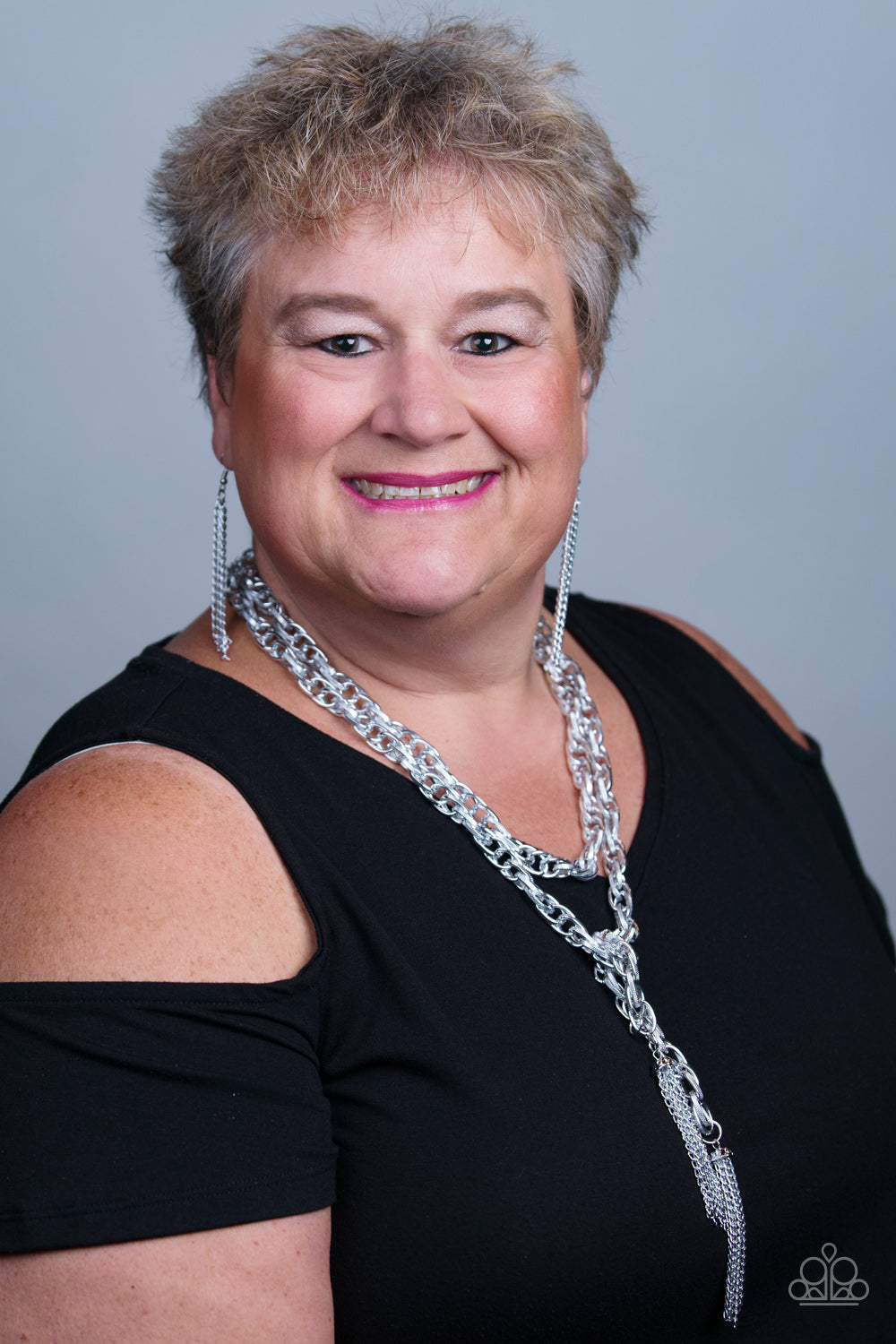 A single strand of spiraling, interlocking links with light-catching texture is anchored by two tassels of chain that add dramatic length to the piece. Undeniably the most versatile piece in Paparazzi's history, the scarf necklace features FIVE different ways to accessorize: Open Layer, Loop, Traditional Wrap, Double Knot, and Nautical Knot.