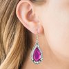 Featuring a regal teardrop cut, a pink gem is pressed into a silver spade shape frame radiating with glassy white rhinestones for a refined look. Earring attaches to a standard fishhook fitting.